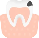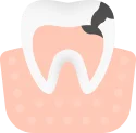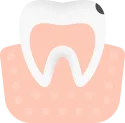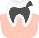 Как выглядит: Появление темных пятен на эмали зуба или кариозных полостей (углублений], в которые попадает пища.