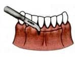 - Отслаивается часть десны (слизисто-надкостничный лоскут)