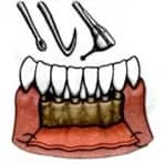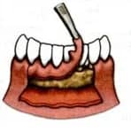 - Удаляются грануляционные ткани, чистятся костные карманы и удаляется зубной камень