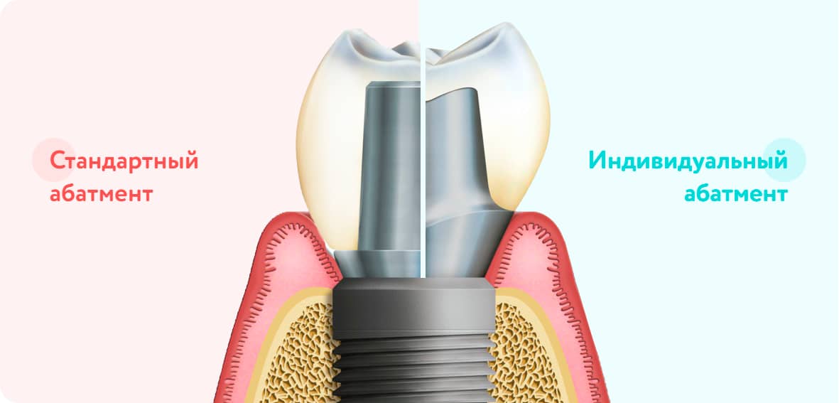 В некоторых клиниках, с целью экономии, могут практиковать установку стандартных абатментов — которые НЕ учитывают индивидуальную анатомию пациента, это приводит к снижению срока службы конструкции и при этом страдает эстетика. Стандартная форма абатмента и размеры не могут повторить форму зуба. Из-за чего увеличивается риск того, что элементы системы будут установлены некачественно и конструкция прослужит ограниченное время.