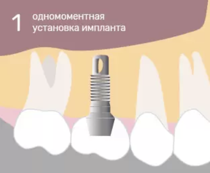 При одномоментной имплантации(установка импланта сразу после удаления зуба), соблюдаем максимальные условия стерильности, поскольку при одномоментной имплантации удаляется зуб, а он зачастую бывает сильно разрушен и потенциально может быть источником инфекции.