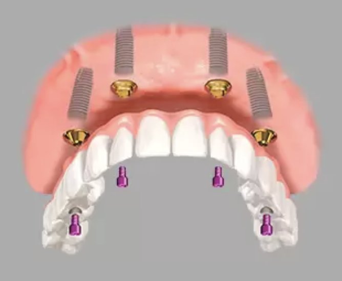 Протезирование по технологии метод на 4-х имплантах - это передовая методика восстановления зубного ряда за 1 день при полной адентии. Также она используется в случаях, когда большинство зубов отсутствуют, а оставшиеся нельзя вылечить или использовать в качестве опоры для протеза.
