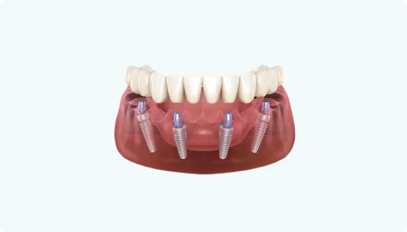 Для начала давайте разберёмся, что такое метод на 4-х имплантах и как выглядит данная конструкция.